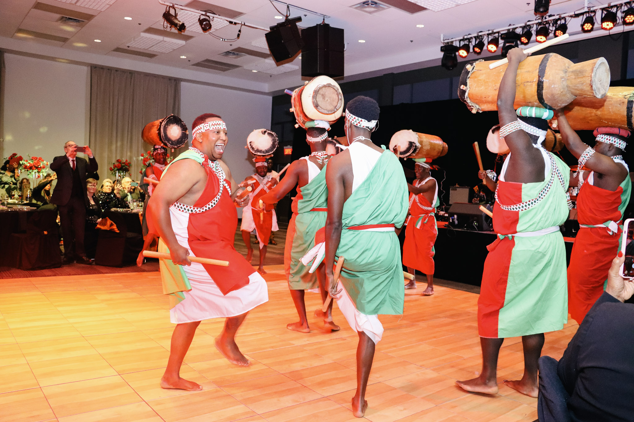 La soirée a proposé une programmation riche et diversifiée, reflétant la pluralité des talents et des voix au sein des communautés noires. Les invité.e.s ont été touché.e.s par des performances musicales soul, caraïbéennes et afrobeat ainsi que par une performance saisissante d’un groupe culturel burundais, dont les tambours traditionnels ont fait vibrer la salle.